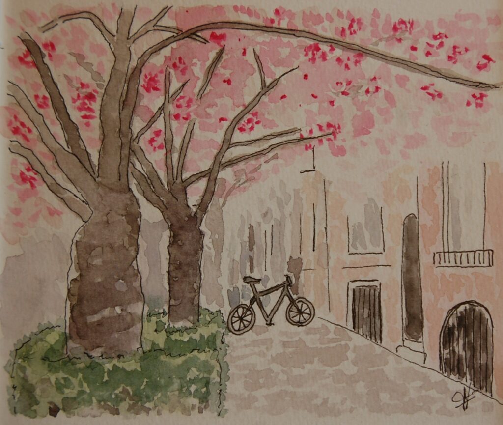 Croquis de la plage de Barneville – encre et aquarelle sur carnet 14×14
